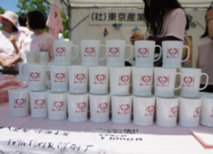 パネルでアピールパネルでアピール この「チャリティーマグカップ」は、ペットボトルの成型段階から発生する樹脂の端材を再利用した、エコなマグカップであると同時に、アースデイの会場においても、マイカップとして利用できるので大変便利です。アースデイの会場では、飲み物を購入する際は基本的にマイカップやマイ食器を持参し、持参していない場合は有償で借りることになっており、返却する際は簡単にきれいにする必要があります。当日も、早速このマグカップで一杯飲んできます、という来場者もいらっしゃいました。