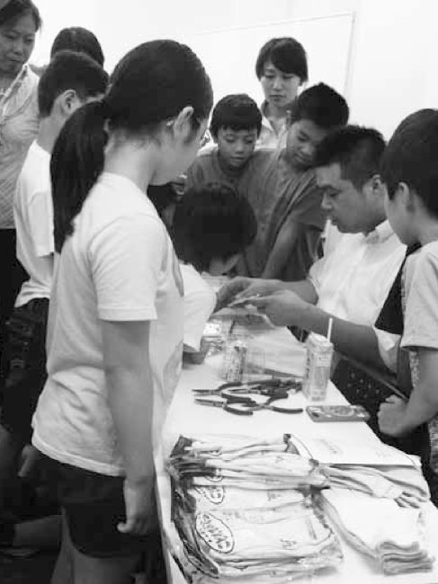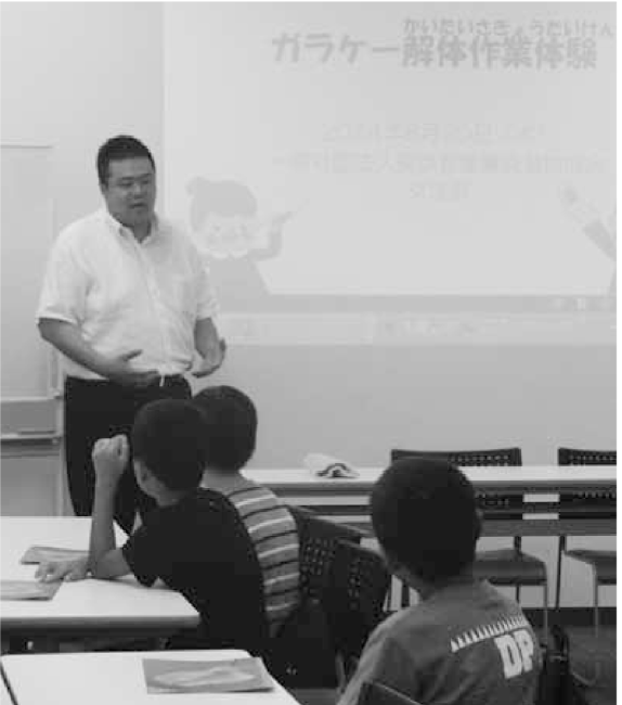 引き続き、部員の平原さん(山下産業株式会社)、松下さん(有明興業株式会社)、森さん(高俊興業株式会社)が、各企業の紹介と『産業廃棄物とは?』についての説明を行いました。