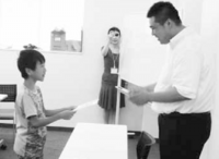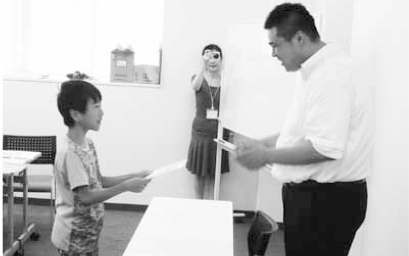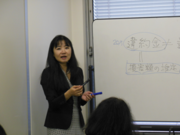 勉強会会場 OJTを行うコツも、ゲームを通じて教えていただいた。初めに行ったのは「傾聴力テスト」というもので、簡単な計算問題や指示が19個あり、それを3分間のうちにすべて終わらせるというテストである。このテストには仕掛けがあり、問1の「まず問題をすべて読みなさい。」という指示に従い、すべての問題を読んだ後に最後の問の「問2のみをやりなさい。」という指示に従えばよいだけのテストである。しかし、3分間で終わらせなければならない、という先入観から、多くの部員が順番通り問題を解いてしまっていた。私も引っかかってしまったひとりであり、簡単な問題でも思い込みや先入観により、指示通りに行うことができないということを実感できる実践問題であった。つまり、人の話を最後まできちんと聴いているかどうかがわかるテストである。