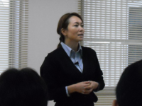 中山人間学部准教授ゼミの学生さん達と共に中山人間学部准教授ゼミの学生さん達と共に 第1部は『廃棄物処理業界で働く女性』というテーマで、野村副部長(株式会社 東京クリアセンター)が講演を行いました。「昔一人で会社にて留守番をしていた時に、お客様より、まだ廃棄物の回収に来ていないが、と催促の電話連絡をうけ、自分は運転免許が無かった為に徒歩で駆けつけた。」というようなエピソードを織り交ぜながらお話をされ、最後に「中途入社で経理として入社したはずが、収集運搬と営業以外は全て経験させて頂いた。全てを経験させてくれた上司、会社があってこそ今の自分がいる。廃棄物をやっていてよかったと思える会社にしていかなければと思っている。」と語り、講演を閉めました。