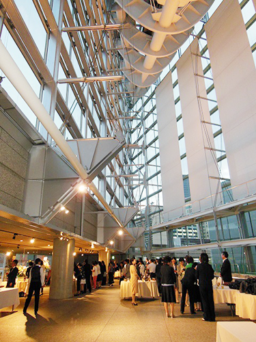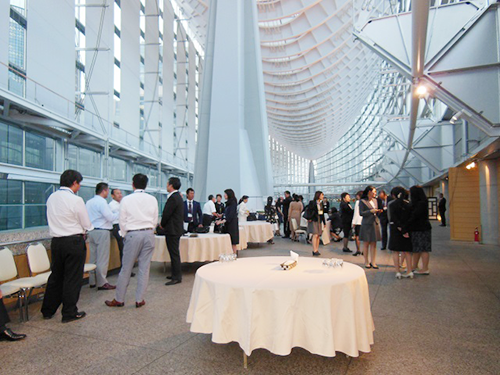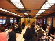 賀詞交歓会会場の様子賀詞交歓会会場の様子 賀詞交歓会はフロアを移して行われました。円卓が並んだ会場では、会場入口で引いたクジの番号に従って着席をしました。