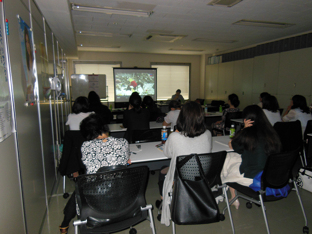 女性部勉強会風景女性部勉強会風景 今回の勉強会は、 「台所から地球を考える」というテーマで、「南北問題」「生物多様性」「ビオトープ」の3つのポイントから、お話していただきました。