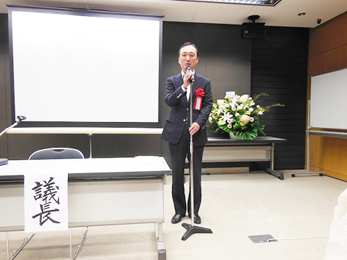 交流会は、埼玉県産業廃棄物協会女性部会の徳原昭子部会長の開会の挨拶で幕を開け、埼玉県環境部産業廃棄物指導課監視・指導担当主査の宮原正行氏の講演へと続きました。