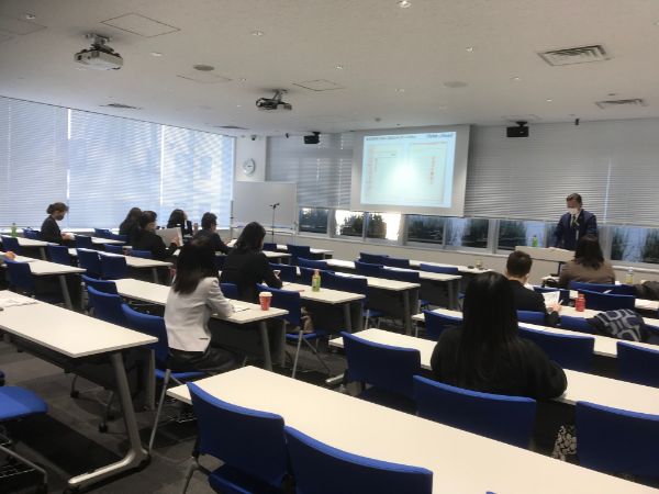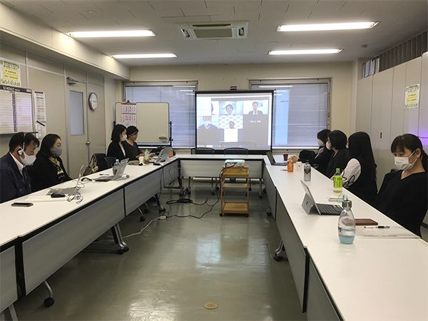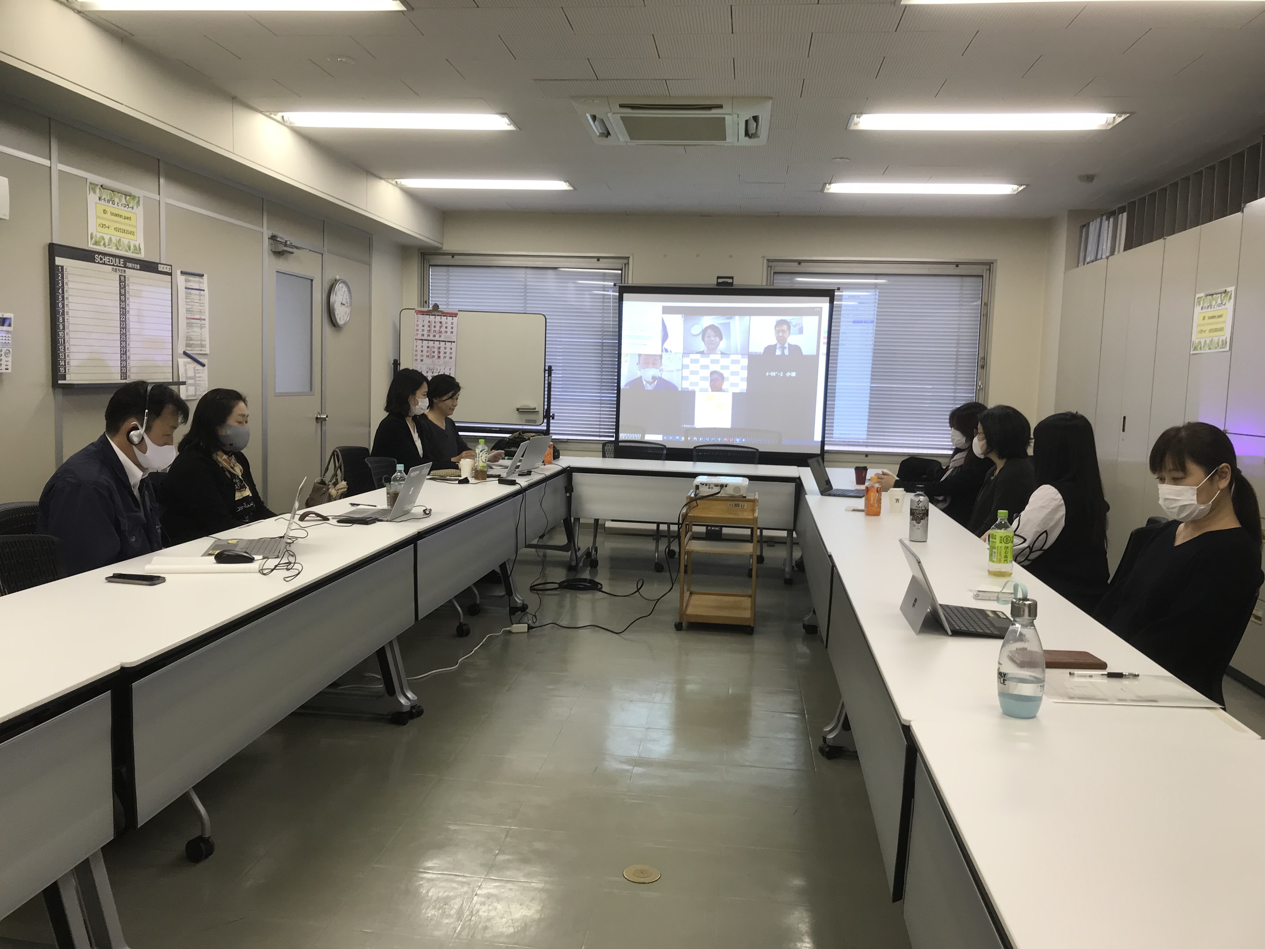協会会議室の開催風景 11月19日(木)、女性部(渡邉久美 部長)は、営業チームによるオンラインの電子契約勉強会を行い、協会会員企業より約70名が参加されました。